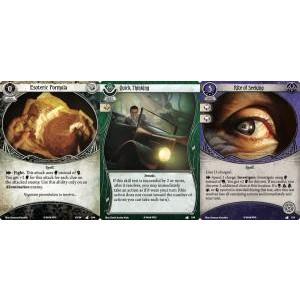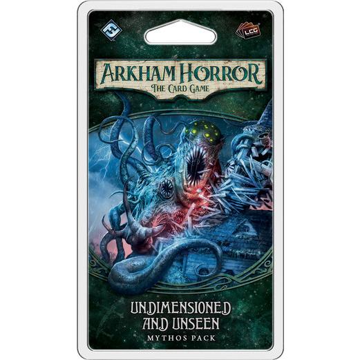 Things are definitely getting weird in Undimensioned and Unseen, the fourth Mythos Pack in The Dunwich Legacy cycle for Arkham Horror: The Card Game…By the time your pursuit of two missing professors leads you to the scenario from Undimensioned and Unseen, you’ll have traveled far from the familiar comforts of Arkham, and you’ll have witnessed things you know no one would ever believe. You’ll find yourself neck-deep in furtive cultists and their sacrifices, inundated with information about “Ancient Ones” and unholy rituals. And you’ll suddenly find yourself forced to destroy terrifying, monstrous creatures that are literally impervious to everything in your arsenal…A mystery within a mystery, Undimensioned and Unseen may bring you another step closer to your ultimate goal, but you must first track down whatever knowledge or power may allow you to defeat a number of otherwise invulnerable Abominations. And it demands that you complete your investigation quickly—possibly by making use of the Mythos Pack’s new player cards—lest you should no longer be the hunter, but the hunted!