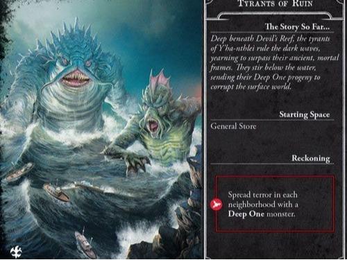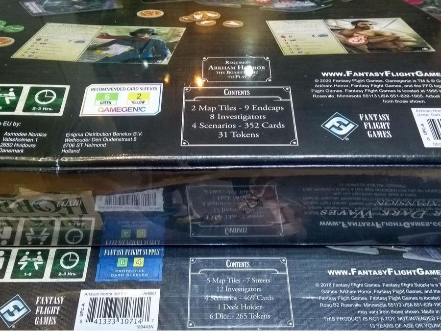 Cold salt waves beat on the New England coast and thick fog rolls in off the bay, obscuring the small fishing hamlets that nestle in the darkness. Dark things creep along the shoreline, strange lights glide deep beneath the surface of the Atlantic, and the pallid villagers go missing with disturbing regularity. Under Dark Waves is a new large box expansion for Arkham Horror, taking your investigations beyond the town of Arkham to the other ill-fated towns of Massachusetts. Two new double-sided tiles bring Kingsport and Innsmouth to vibrant life, while eight more investigators arrive to join your party, ranging from a drifter like Ashcan Pete to a letter carrier such as Stella Clark. These investigators will have their work cut out for them with four entirely new scenarios pitting them against the horrors that lurk beneath the ocean waves. With over 150 encounter and event cards, alongside new assets, monsters, conditions, and the terror mechanic, Under Dark Waves boasts a vast undersea treasure trove, pulling you into some of the Cthulhu Mythoss most compelling tales.