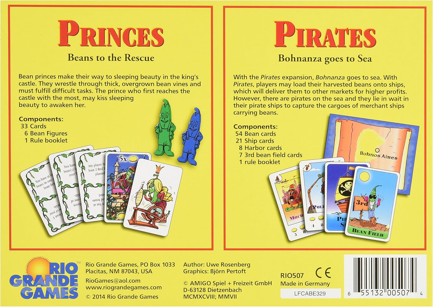 Bohnanza: Princes & Pirates is an English language compilation of two Bohnanza expansions previously available only in German: Bohnröschen and La Isla Bohnitâ.