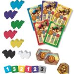 In Camel Up, up to eight players bet on five racing camels, trying to suss out which will place first and second in a quick race around a pyramid. The earlier you place your bet, the more you can win should you guess correctly, of course. Camels don’t run neatly, however, sometimes landing on top of another one and being carried toward the finish line. Who’s going to run when? That all depends on how the dice come out of the pyramid dice shaker, which releases one die at a time when players pause from their bets long enough to see who’s actually moving!
