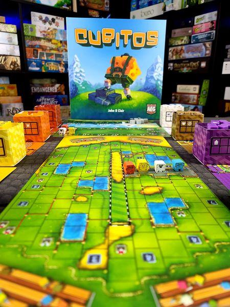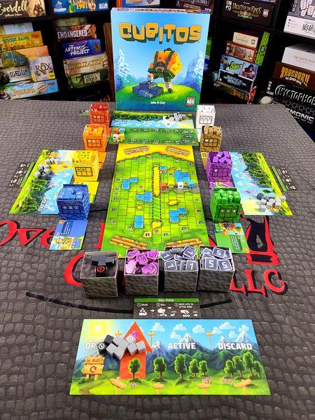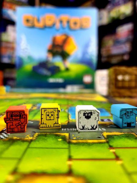 Be fast or be last! In Cubitos, players take on the role of participants in the annual Cube Cup, a race of strategy and luck to determine the Cubitos Champion. Each player has a runner on the racetrack and a support team, which is represented by all the dice you roll. Each turn, you roll dice and use their results to move along the racetrack, buy new dice, and use abilities but you must be careful not to push your luck rolling too much or you could bust!