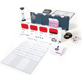 Starting in the second round, a member of each team must again give a clue about their words to match a numbered code. If I get 2-4-3, I might now say, sucker-prince-stake. The other team then attempts to guess our numbered code. If they’re correct, they receive a white mark of success; if not, then my team must guess the number correctly or take a black mark of failure. (Guessing correctly does nothing except avoid failure and give the opposing team information about what our hidden words might be.)