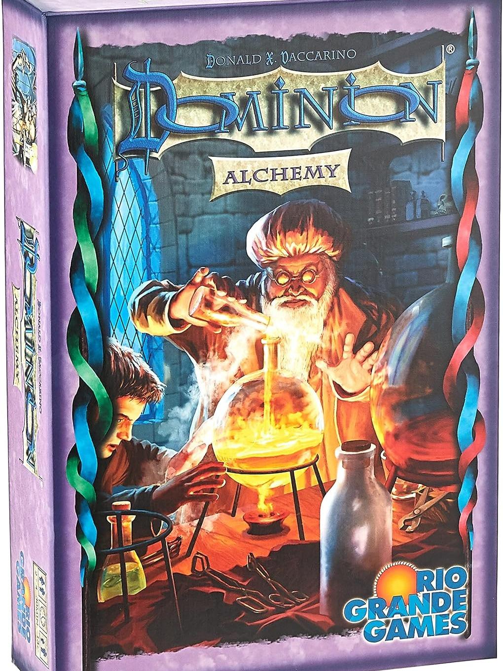 There are strange things going on in your basement laboratories. They keep calling up for more barrels of quicksilver, or bits of your hair. Well it’s all in the name of progress. They’re looking for a way to turn lead into gold, or at least into something better than lead. That lead had just been too good of a bargain to pass up; you didn’t think, where will I put all this lead, what am I going to do with this lead anyway. Well that will all be sorted out. They’re also looking for a universal solvent. If they manage that one, you will take whatever they use to hold it in and build a castle out of it. A castle that can’t be dissolved! Now that’s progress. Dominion: Alchemy is an expansion, and can’t be played by itself; to play with it, you need Dominion a standalone expansion to Dominion (Dominion: Intrigue), or Dominion Base Cards . Those provide the Basic cards you need to play (Treasure, Victory, and Curse cards), as well as the full rules for setup and gameplay. Dominion: Alchemy can also be combined with any other Dominion expansions you have. Part of the Dominion series.