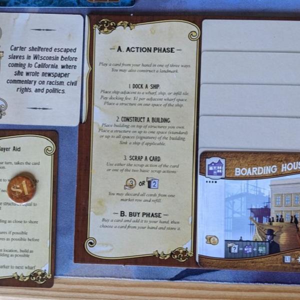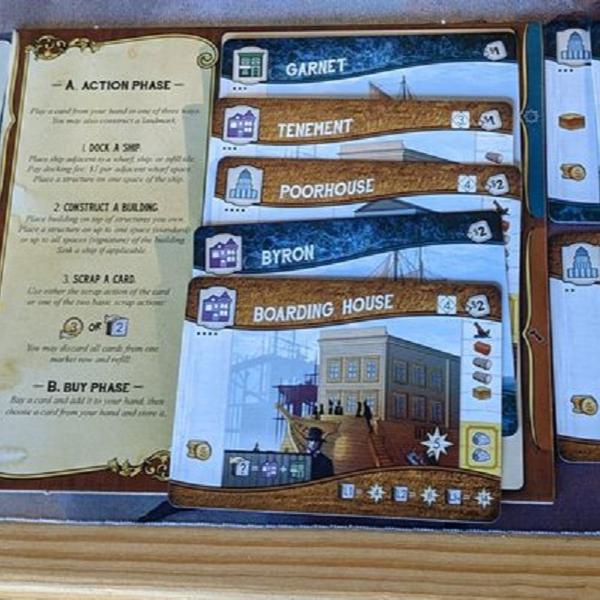 The game takes place over three rounds. In each round, players take turns playing cards and placing tiles to take control of wharves to earn points and influence.