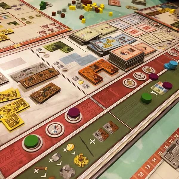 Founders of Teotihuacan is a strategy game where you compete against your friends to create the best design of the city of Teotihuacan. Over the course of three to four rounds you will place your action disks to the main board, forming towers of varying strength, strategically use the bonuses they offer, and construct temples, resource buildings and the pyramid central to your project of Teotihuacan. You will balance generating resources and using them, as finding good locations on your city board becomes increasingly more difficult, and you will try to outwit your opponents, making use of an innovative and interactive action system. Finally, once the eclipse comes, all designs will be assessed and the player with the most points will win and become the architect to join the ranks of Founders of Teotihuacan! Founders of Teotihuacan is a stand-alone game, related to Teotihuacan: City of Gods only by the shared setting of the ancient city of Teotihuacan. Thematically, the events in Founders takes place at an earlier time in history, while what was to become a magnificent city was yet in its infancy and only few inhabited the area.
