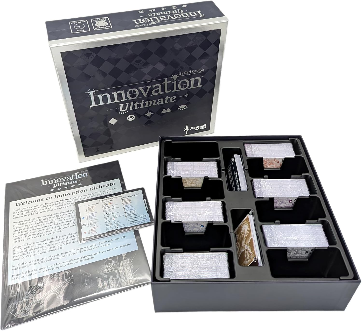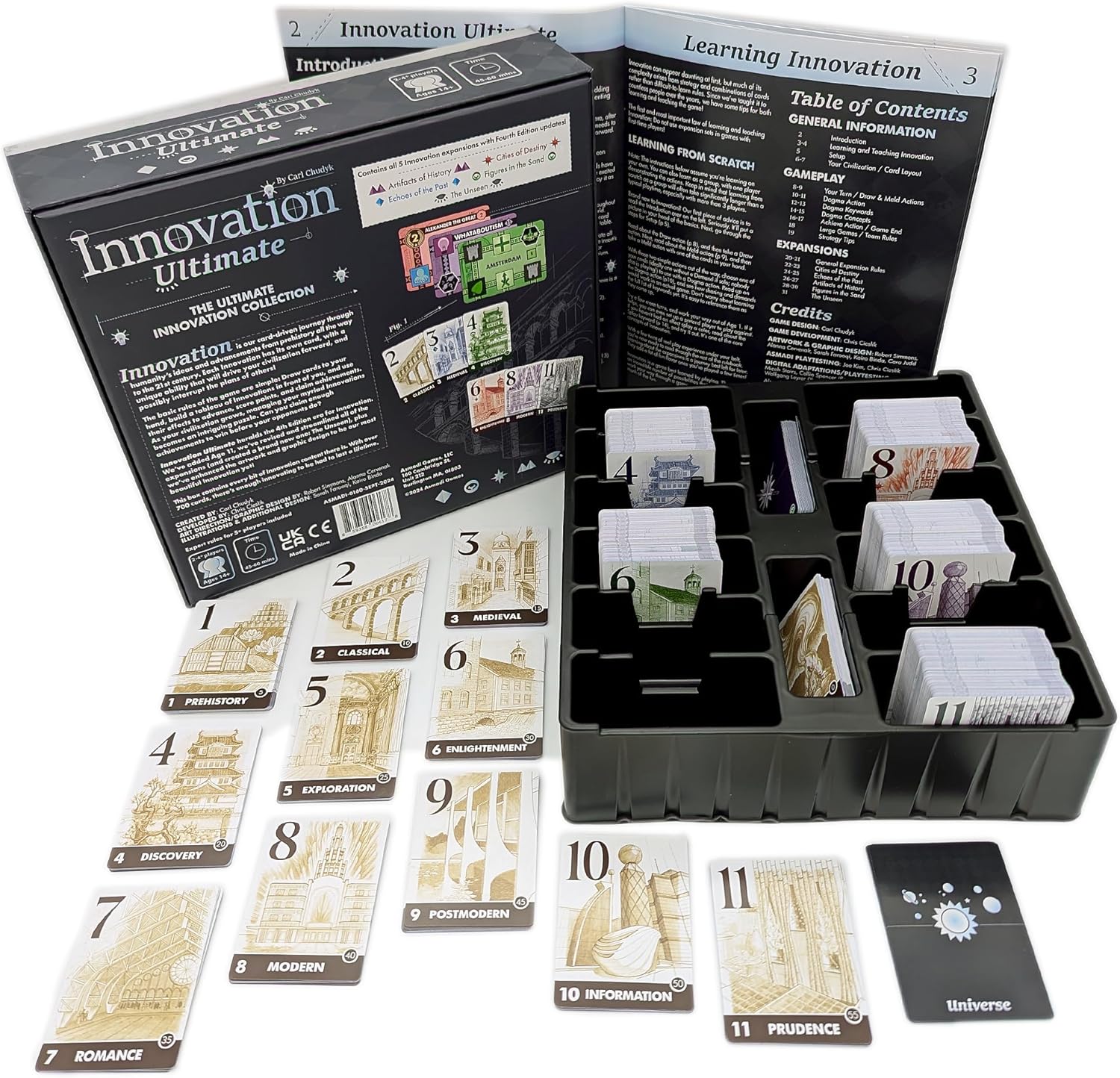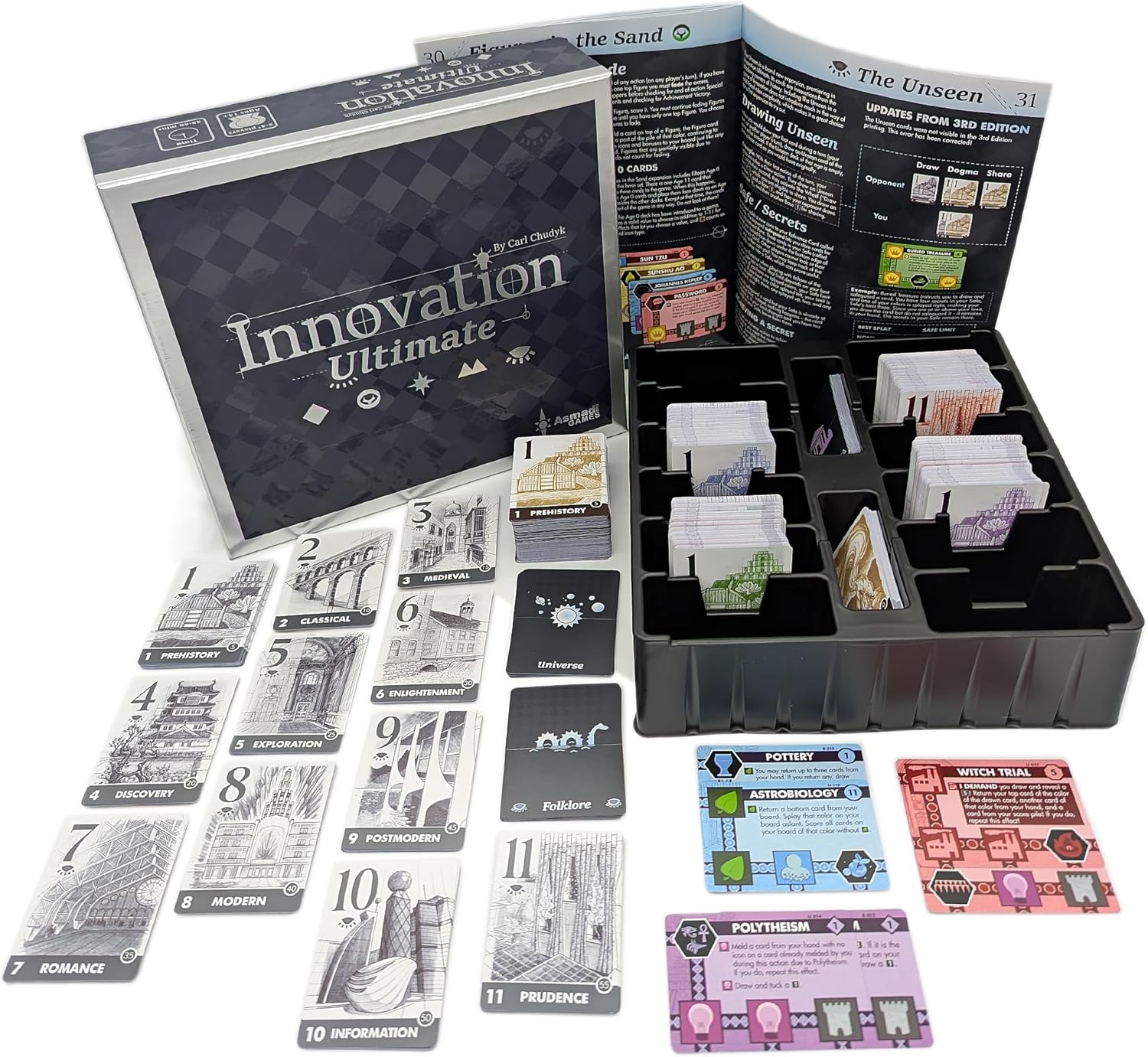 Innovation Ultimate is a box set containing Innovation and all five of its expansions, which includes a brand new expansion titled The Unseen.