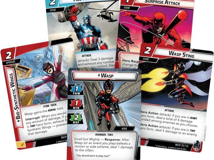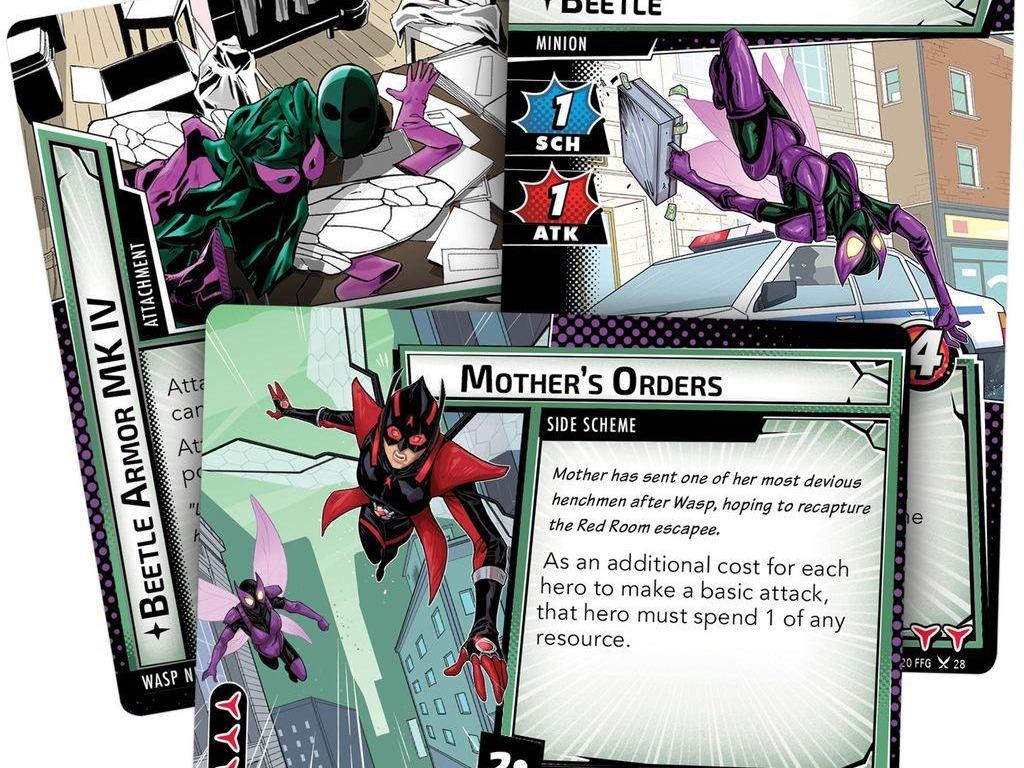 Raised in the Soviet brainwashing program known as the Red Room, Nadia van Dyne spent the first years of her life in training as a deadly elite assassin. After she escaped with the help of a Pym Particle sample, Nadia immigrated to the United States, where she built her own Wasp suit and joined the Avengers, using her powers to fight villains of any size! Drawing on the same size-changing foundation as Ant-Man in the Wasp Hero Pack for Marvel Champions: The Card Game, Wasp nevertheless boasts her own unique strategies, preferring to set up the perfect strike and execute her plans flawlessly. This Hero Pack includes a 40-card pre-built deck featuring the Aggression aspect thats ready to play right out of the pack, and whether youre most excited to jump into action as Wasp or add new cards to your other heroes, youll find plenty to enjoy within this expansion.
