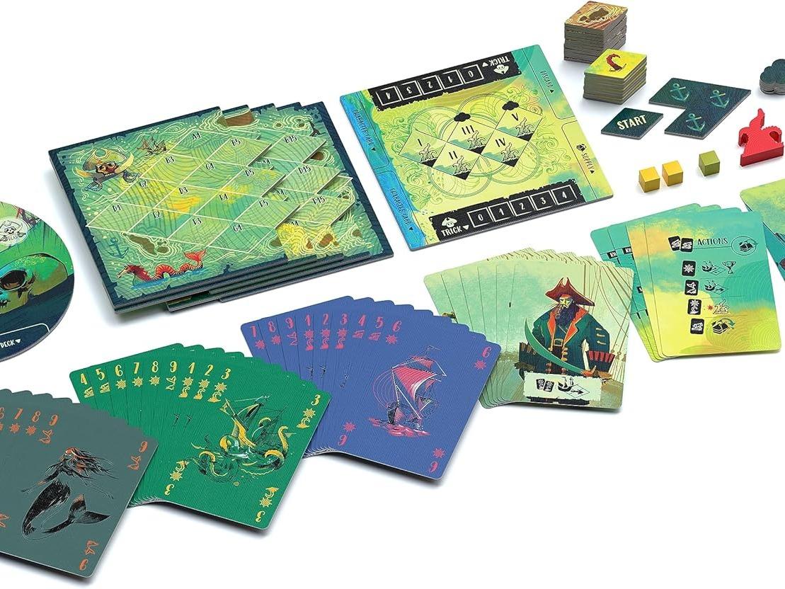 Strap up your piratical boots, and navigate your ship through turbulent waters in Sail, a co-operative trick-taking game for two players. Reach the end of this dangerous deep end, and avoid taking damage from the Kraken to win the game together…or your crew will be sleeping with the fish!