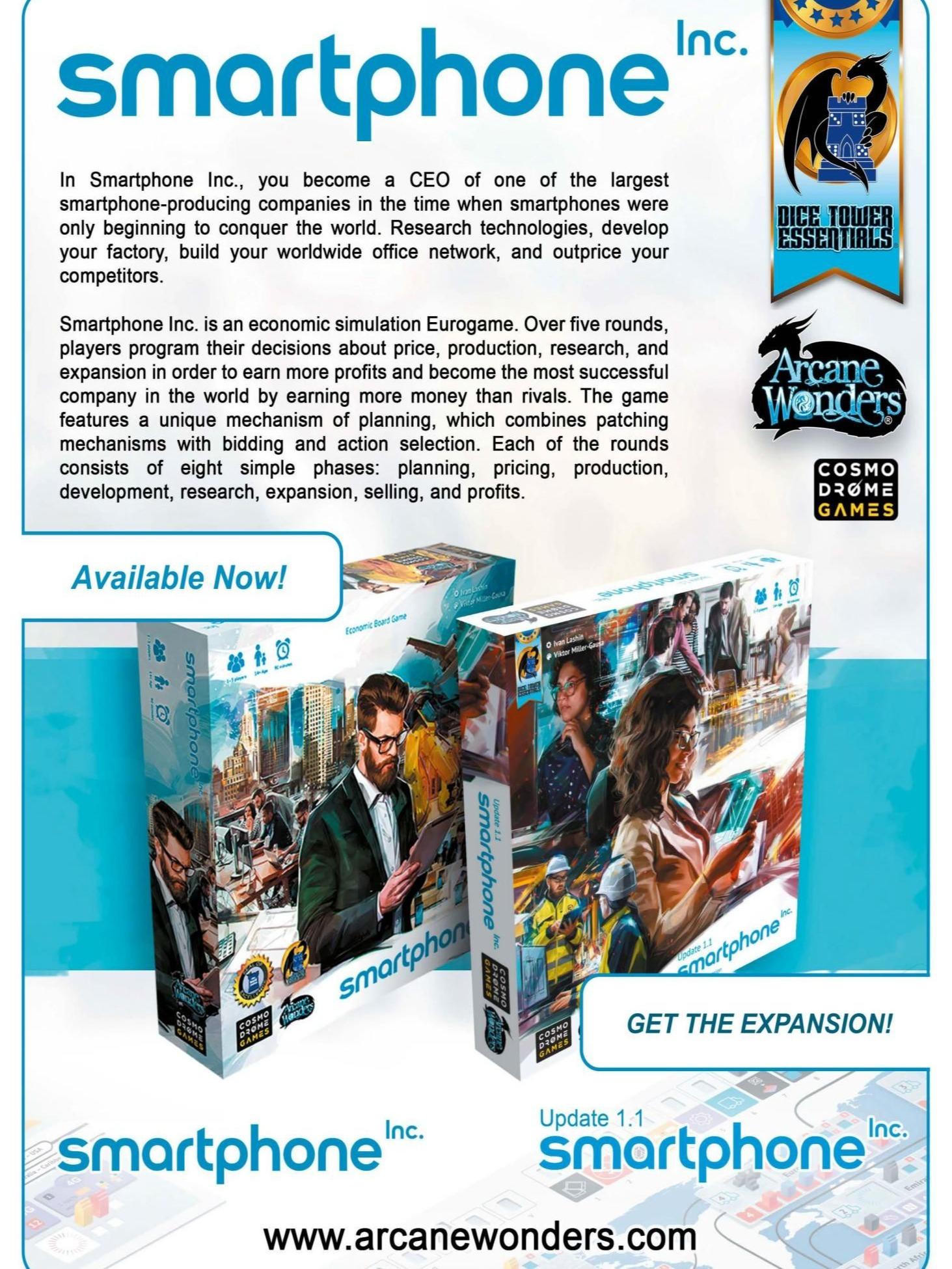 Smartphone Inc. Update 1.1 Expansion expands the base game of Smartphone Inc! Expansion adds 4 new modules for playing the game including a new 2-3 Player specific game board and Hardcore Mode! Includes 5 new CEO Miniatures