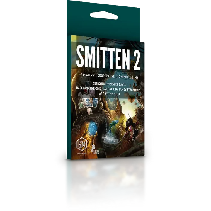 Smitten 2 is a cooperative micro-game for 1-2 players. The 9 new cards in this standalone sequel are designed by Ryan S. Davis. In Smitten 2, players work cooperatively with limited information/communication to complete two identical 3×3 grids of cards, each inspired by Stonemaier games released since the original Smitten and illustrated by The Mico. There are multiple difficulty levels and separate modes for solo and 2-player games.