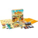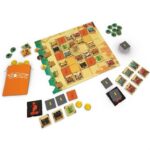 In Sobek: 2 Players, both opponents collect and sell Goods to earn the most Victory Points. On their turn, the player chooses among 3 options: take a tile on the Market, sell a set of Goods or play a Character. When the player takes a tile, they select one on the Ankh pawn’s line and add it to their hand. They then place the Ankh pawn in the line that is indicated by the tile they just took, which determines the choices available to their opponent.
