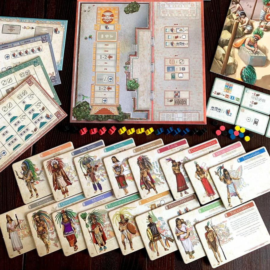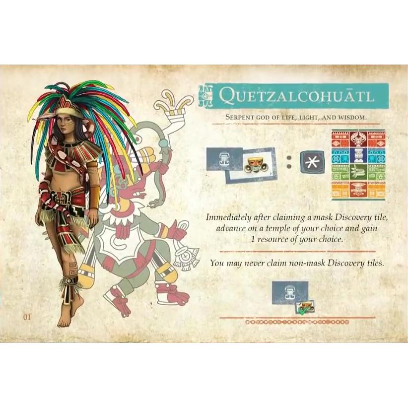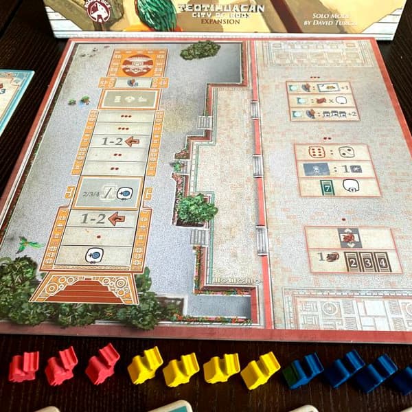 Teotihuacan: Late Preclassic Periodis a modular expansion which introduces several new options to enrich and expand the game experience. Asymmetrical player powers give each player a unique benefit. A prestigious fourth temple allows unlocking of permanent powerful abilities, while being much more difficult to advance on. Variable effects impact each season and eclipse. New engineering techniques and renewed plans for beautifying the central Pyramid of the Sun offer fresh challenges and possibilities.