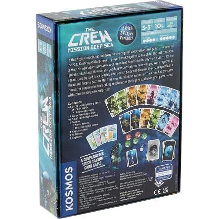 In the trick-taking card game The Crew: Mission Deep Sea, you and the other players work together to search for the lost continent of Mu. This new adventure takes your crew deep down into the abyss on a search for the fabled sunken land. How far you get depends entirely on how well you work together as a team. Card by card, trick by trick, your search party will discover the challenges that lie ahead and forge a path to Mu. This new version of The Crew has the same innovative co-operative trick-taking mechanism as the highly lauded original game — but with some exciting new surprises! While communication between your crew members is severely limited by your submerged state, it is also critical to your success; finding the hidden land in the murky depths depends not only on winning tricks, but also on carefully negotiating the order in which they are won. If things don’t go as planned, you might just be able to salvage the operation, but it will take near flawless execution and perhaps a little luck to finally reach Mu.