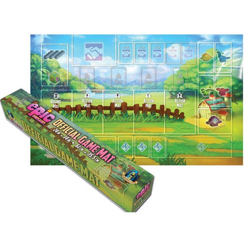 This 24″ x 14″ premium neoprene gaming mat will really ramp up your Dino Ranching experience. It has spots for all game components and keeps your game framed and lets the beautiful art show through.