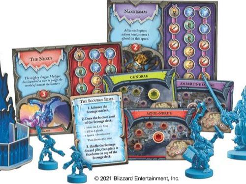 In World of Warcraft: Wrath of the Lich King, players journey to the frozen continent of Northrend to face the armies of the Lich King. This Pandemic System game showcases familiar mechanisms and gameplay, now tweaked to embrace the setting of the Wrath of the Lich King. Forts, temples, battlegrounds, and more populate the game board as you and your fellow heroes journey across the cold landscape. Along the way, you’ll set up strongholds, complete quests, and do battle with legions of undead. In more detail, players team up as legendary heroes from across Azeroth, each with their own unique abilities to help in and out of combat. Heroes such as Thrall, Warchief of the Horde; Varian Wrynn, King of Stormwind; Sylvanas Windrunner, Banshee Queen of the Forsaken; and many more are at your fingertips. As the Scourge grows, more undead will populate the board. Throw dice as you enter into battle against the hordes of ghouls and ferocious abominations, using hero cards to add power to your attacks, block incoming assaults, heal wounds, take mounts to far off spaces, and so much more. As you fight your way to the Lich King, all manner of dark magic and terrible creatures under his control need to be neutralized. This comes in the form of quests, a brand-new mechanism that can be completed as a team through a combination of dice rolls and the hero cards at your disposal. However, each quest comes with its own dangers and hindrances. Complete these quests to move closer to the final assault on Icecrown Citadel, where the Lich King himself resides.