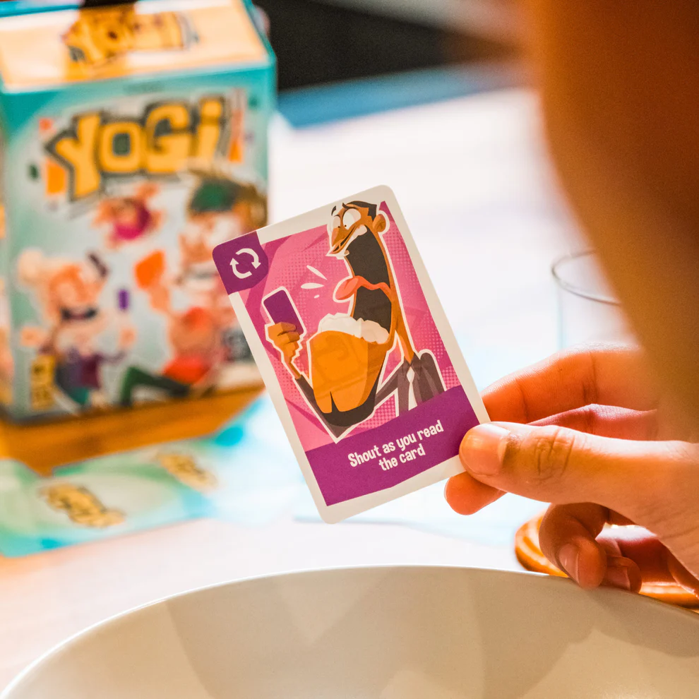 In Yogi, players draw cards and either have to place them on their bodies or place them on the table, but follow instructions on what to do with some of their body parts.